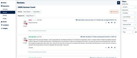 - Best and Worst Filters—Quickly find recent negative and positive reviews so that your response is as close to immediate as possible.